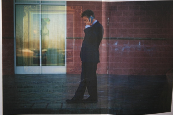 Time magazine is printed on pretty thin paper these days. Thin enough that if you happen to read it with a little backlight, images from the back side of the page you’re reading show through. The June 7 issue (Pope on the cover) included a photo of Kentucky senate candidate (also ex-ophthalmologist, libertarian scion, Tea Partyer and occasional inserter of foot into mouth) Rand Paul walking past a picture window while talking on his cell phone. Look below to see who’s staring out the window, keeping a watchful eye on our political landscape.