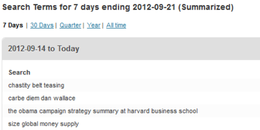 In the spirit of that pledge, here’s a screen shot of the search terms that have been used to find my blog over the past seven days:
