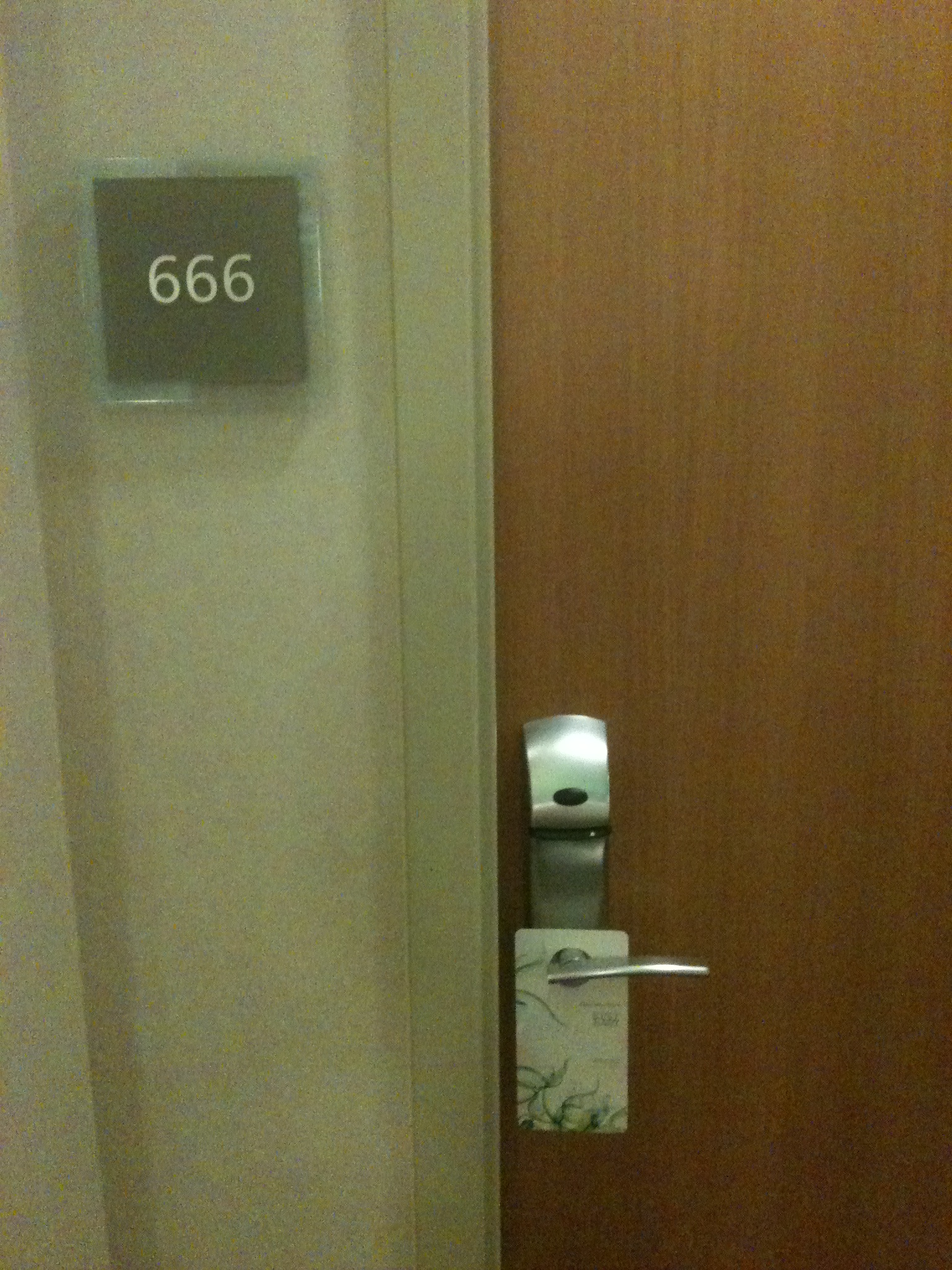 I go to Detroit once a quarter to visit with my friends at EOS Worldwide. We meet at the Detroit Airport Westin. I’m glad I’ve never been given this room, which I suspect is the 10th Circle of Hell. Note the Do Not Disturb sign. Demons at work, I assume.
