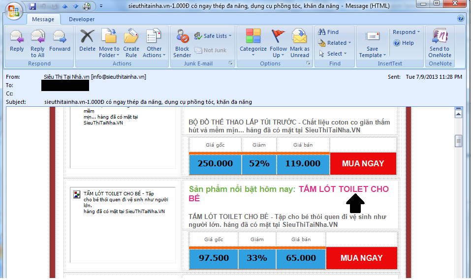 And finally in this category – I got this piece of spam from what appears to be the Vietnamese version of Home Depot. It was entirely in Vietnamese except for one word.