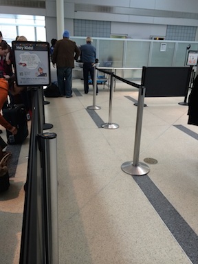 OK, on to my year.  My tour of the visually absurd which started at O’Hare on January 13. I wasn’t fast enough with the phone, so I missed the actual picture.  But here’s the scene.  See the guy at the far end in the blue hat?