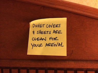 I wrote a blog about the duvet covers sticky note a couple of years ago. Here’s a link .