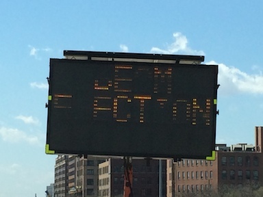 My money is on over-sharing.  A couple of days later, at the very beginning of the same “expressway,” I saw this sign.