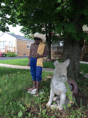 Back to chronology.  Years ago, my friend Chuck Nordhoff introduced me to the joys of in-bad-taste lawn statuary. So I was delighted to see this guy.  He’s about 4 and a half feet tall.  The hat and the glasses are real.  I don’t know anything about the neighborhood over which he presides.  Only that someone thought he was a good idea.