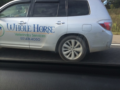 The nice lady driving this car either loves horse country or she really likes to over-share.
