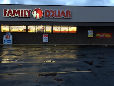 I saw this just before I heard that Family Dollar had put itself up for sale.  It’s a little dark and you may not be able to make out the sign on the far right.  It says, “New!  Everyday Low Prices!”  Really?  This is Family Dollar.  What the hell have they been doing for the last 25 years?