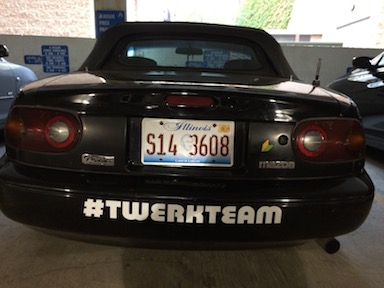 In the spring, I found myself stuck in traffic behind this car on a Chicago expressway. (Side note: now, there’s a misappellation for you.   There’s nothing “express” about Chicago freeways. For that matter, there’s nothing “free” about most of them, either.  Now, back to our story. . .)